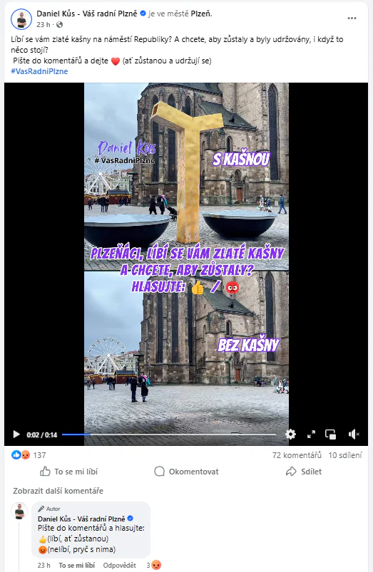 Bouřlivá diskuse mezi zastupiteli se strhla na čtvrtečním jednání plzeňského městského zastupitelstva ohledně slavných kašen na náměstí Republiky. Spouštěčem plamenné výměny názorů politiků byl text uveřejněný na našem webu Plzeňská Drbna v sekci Politická korida. Je na místě se ohradit proti některým výrokům zastupitelů, kteří smysl našeho textu a zejména jasně položené otázky poněkud překroutili a použili při svém politickém boji.